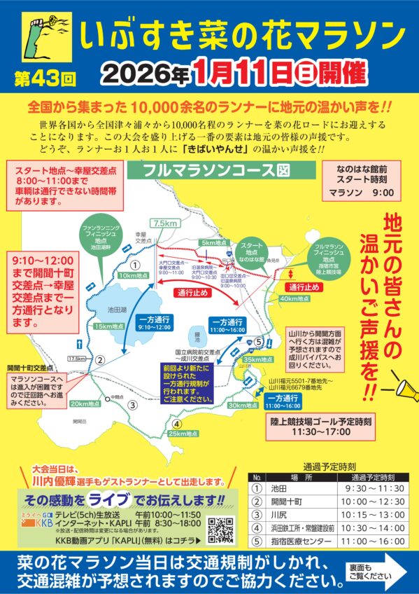 「第43回 いぶすき菜の花マラソン」が開催されます。