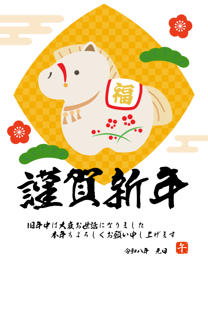 十二支の午(うま)は動物の馬を指し、馬の力強いイメージから、活力・前進・飛躍・成功・繁栄・勝負運を象徴しており、何事も「ウマく行く」前向きな年です。